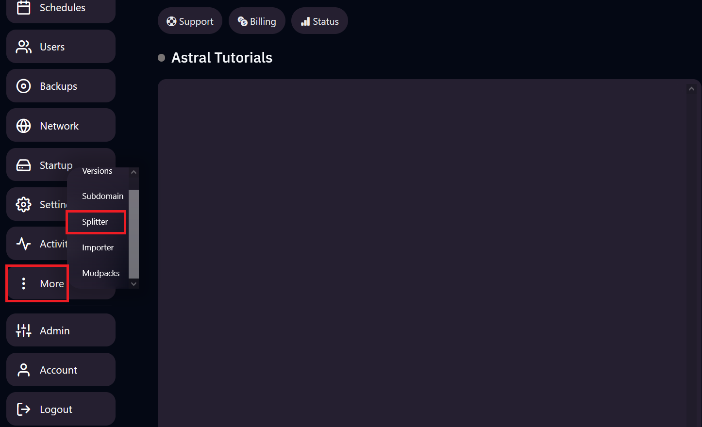 4. You should see your new split server on the splits panel, simply go back to the panel homepage and you should see your new split server.